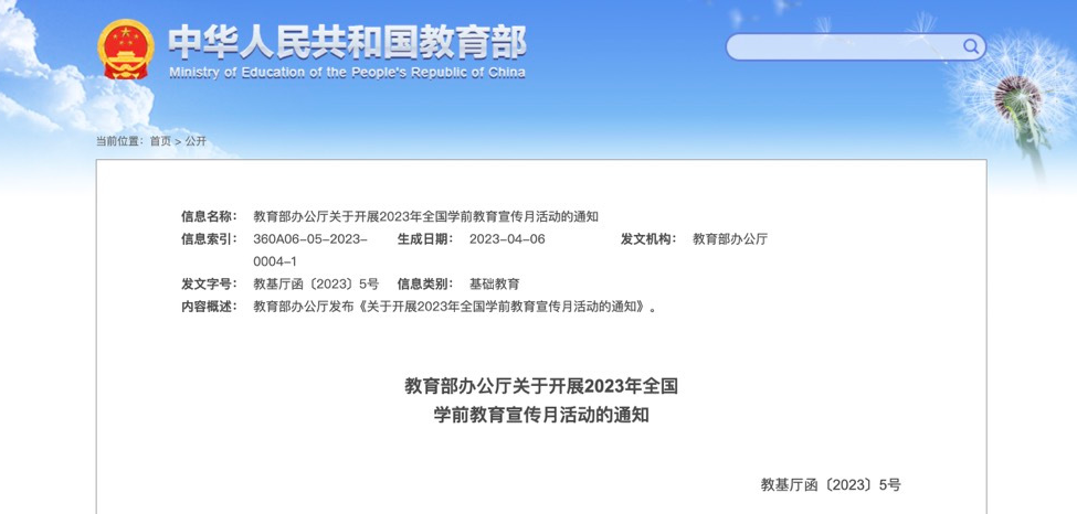 近日,省教育厅日前印发《关于开展2023年学前教育宣传月活动的通知》,要求各地结合实际情况,围绕宣传主题,做好各项安排部署,保证宣传月活动按时进行。
