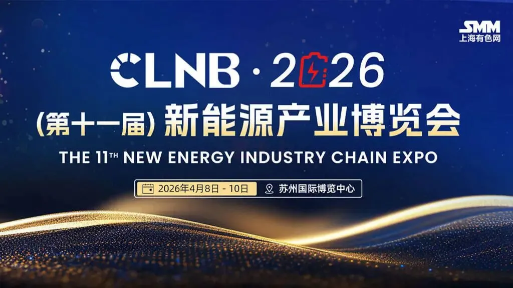 由上海有色网信息科技股份有限公司主办的“CLNB 2026(第十一届)新能源产业博览会”将于2026年4月8日-10日在苏州国际博览中心举行。大会将聚合全球1,500余家展商及参会企业,同时有超30,000人次专业观众,全面覆盖动力电池、储能系统、上游原料、先进材料、智能制造装备、矿业资源及电池循环再生等新能源全产业链环节,为您呈现升级版的一站式产业交流与采购平台。