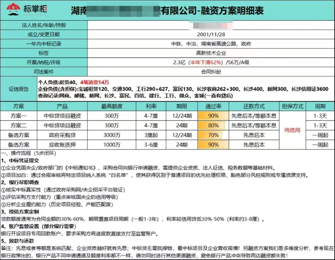 因此,平台避开传统税务贷,为其匹配了“中标贷”与“政采贷”的组合融资路径。