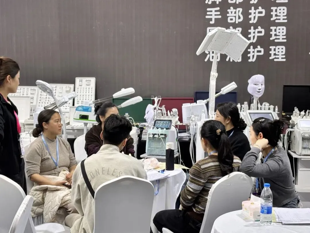 展厅内各大展区人气爆棚,院线护肤、美甲美睫、养生抗衰、美容仪器、纹绣色料、供应链源头好物琳琅满目,咨询、体验、下单络绎不绝。专业技术分享、潮流项目演示、品牌招商对接同步火热进行,干货满满、商机无限。