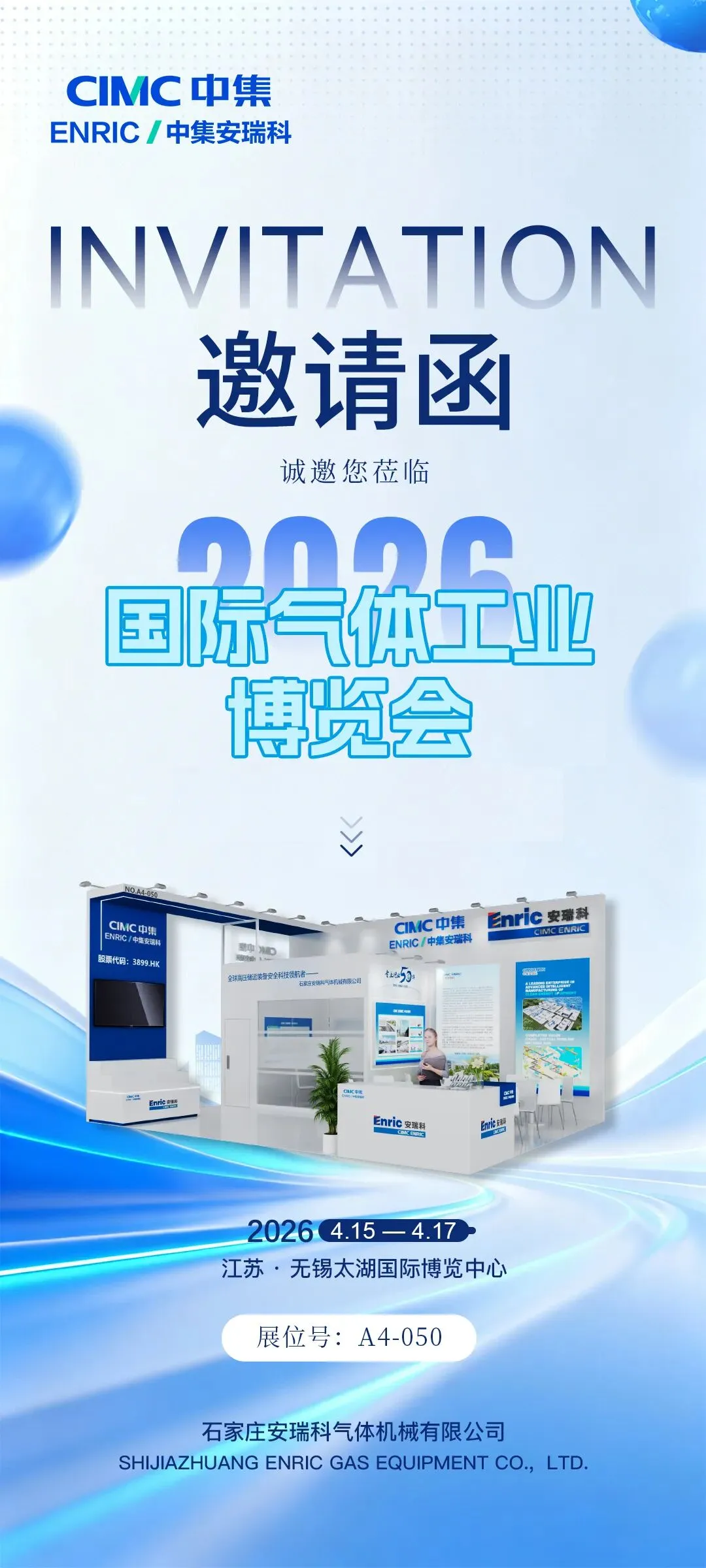 2026国际气体工业博览会将于4月15-17日在无锡太湖国际博览中心举办。作为专业化、国际化的行业盛会,本届气博会将集中展示气体领域前沿技术与装备。石家庄安瑞科气体机械有限公司(展位号:A4-050)作为国内领先的气体储运装备制造企业,将携多款核心产品与创新技术成果亮相。诚邀新老朋友莅临交流,共话行业趋势,共拓合作空间。