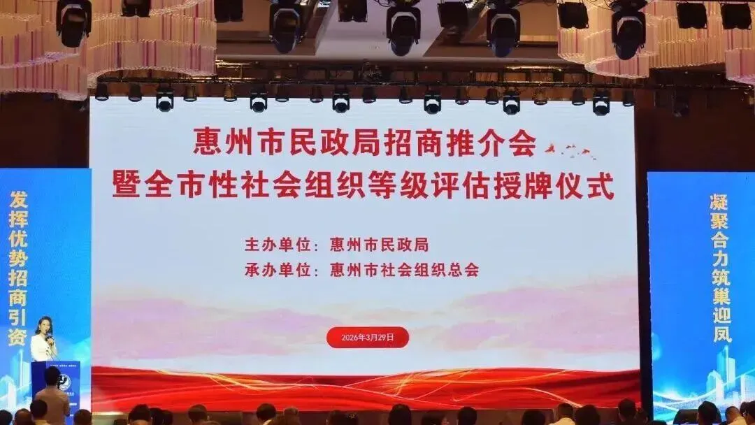 惠州市社会组织总会第三届第二次会员大会圆满结束后,随即举行惠州市民政局招商推介会暨全市性社会组织等级评估授牌仪式。该活动由惠州市民政局主办、惠州市社会组织总会承办。
