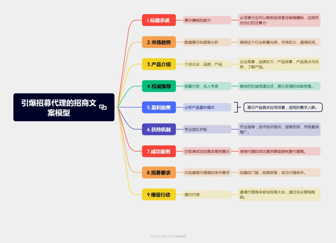 还有一点要提醒大家,邀约的时候,不要过度承诺,比如“你跟我们合作,肯定能赚大钱”“参加我们的招商会,一定能成交”,这样的话只会让客户觉得你不专业、不可信。你只要如实传递项目的价值,告诉客户你能提供什么、能帮他解决什么问题,让客户自己判断,反而更容易获得客户的信任。