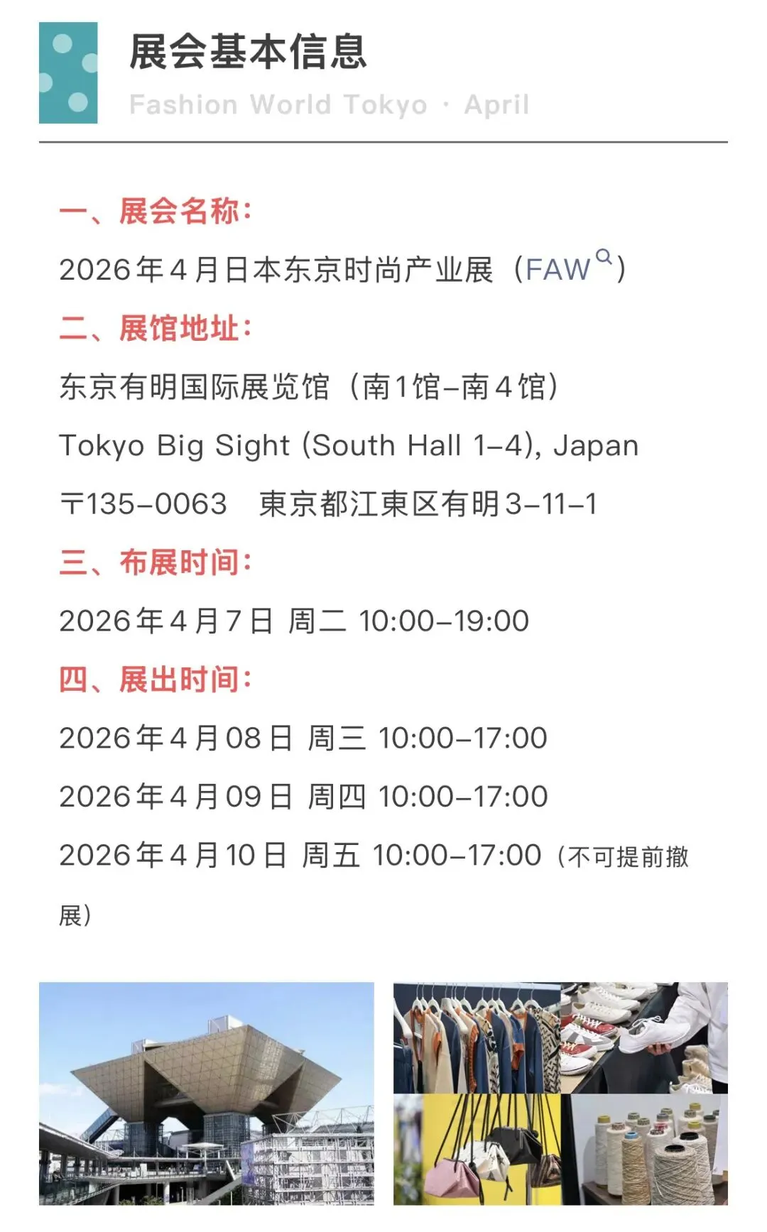 参展指南|2026年4月日本东京时尚产业展FaW TOKYO