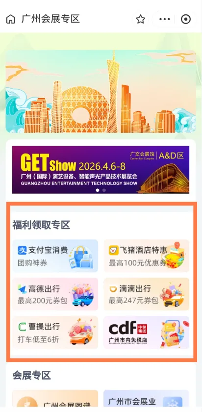 操作简单、一键领取!打开支付宝APP,搜索广州会展专区,进入福利领取入口,即可一键申领酒店、出行、消费券等专属优惠,省心又高效。