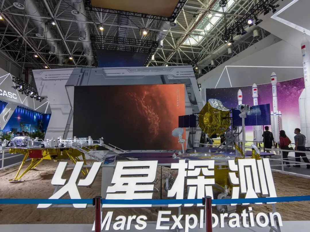 航天科技集团展出约170余项航天科技成果,参与我国载人航天、火星探测、探月工程、北斗导航系统等国家重大工程任务的“主角”齐亮相,新一代载人运载火箭、重型运载火箭等10型运载火箭模型齐上阵,M20A/B地地导弹武器系统和防空领域的“变形金刚”LY- 70防空导弹武器系统也首次公开,彩虹4号无人机3次飞行表演,体现了集团空天一体、攻防兼备的整体优势;