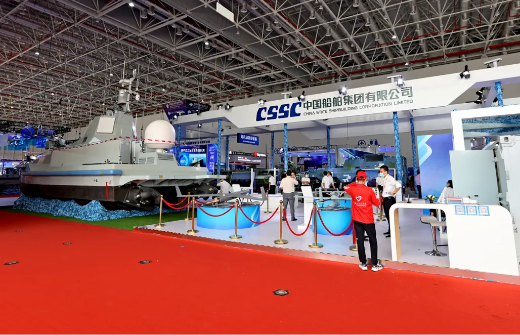 中国船舶首次大规模参展,展出从航母到潜艇等各种军舰和水中兵器模型,一批我国自主研发的无人船艇集中亮相,其中一艘配有各种作战武器、可在自主航行基础上实现对海、反潜和防空等军事应用的多功能无人作战艇实物更是明星展品。