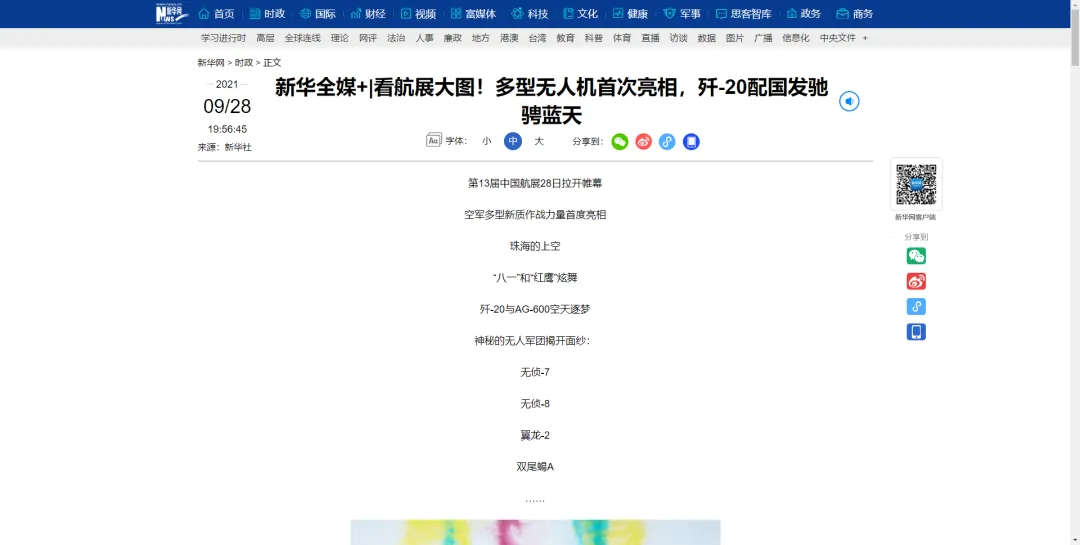 本届航展受到各大媒体的追捧,在广大网民中更是引起热议。“云端见”、“中国芯”、“凡尔赛发言”等热点新闻频频冲上热搜,打造了一场全民狂欢的蓝天盛会。