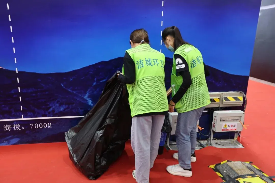 四是展区环境更优美。建立健全网格化管理工作机制,确保每个“网格”有专人负责;现场保洁团队近900人,仅每日处理的垃圾量即达近百吨,使用垃圾袋均为环保可降解材质,并严格做好垃圾分类管控;现场开展动态巡检督查,充分确保展区现场的美观整洁。