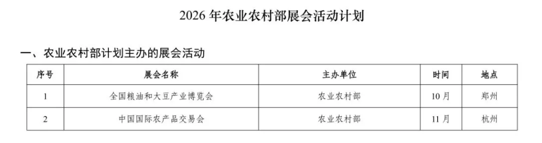 经农业农村部常务会议审议,现将《2026年农业农村部展会活动计划》予以印发,并就有关事宜通知如下。