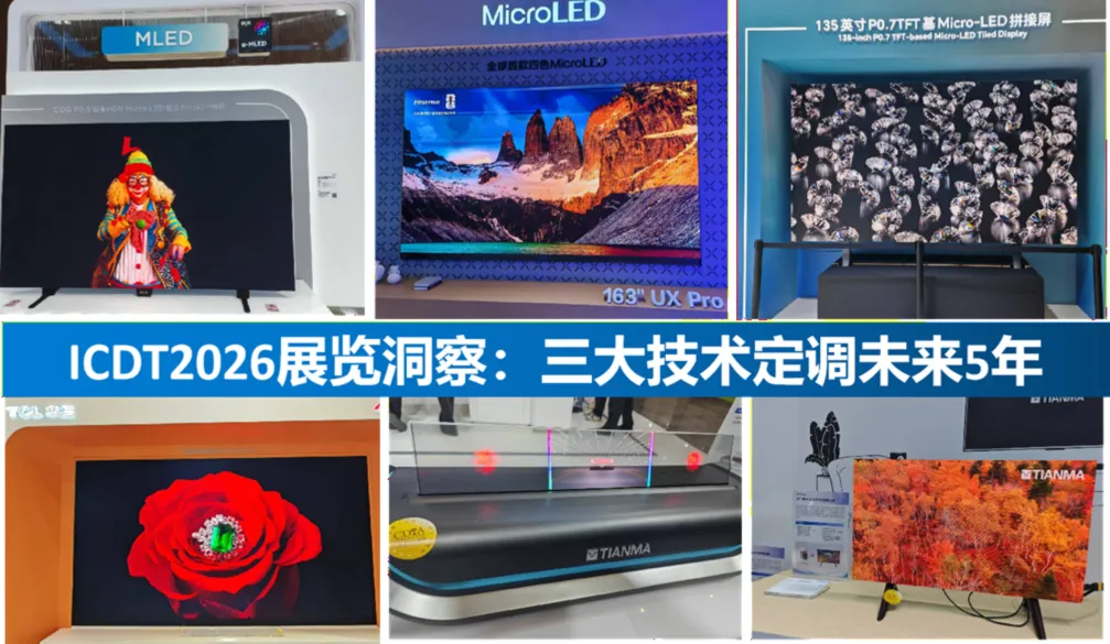 京东方展出了玻璃基COG P0.9超薄Micro LED一体机;TCL华星展出163in P0.9375 Micro LED电视;海信163英寸4色Micro LED巨幕亮相,实现全色域与超高动态光影。