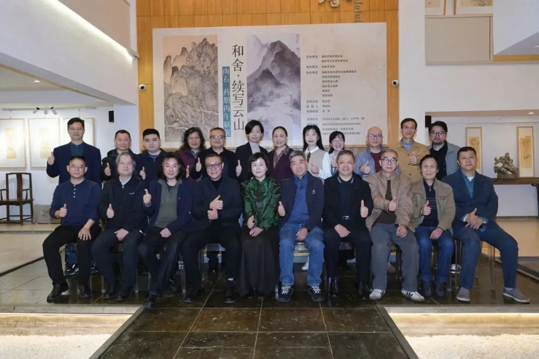 2026年3月28日上午,“和舍·续写云山——雨石·药朋丙午联展”在桂林和舍度假民宿·和舍艺术馆如期开幕。春日的桃花江畔烟雨迷蒙,芳莲池边绿意盎然,为这场跨越江南与岭南的笔墨雅集平添了几分诗情。