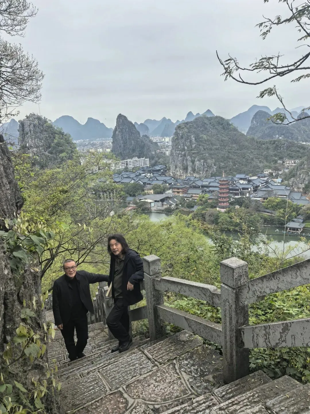 雨石与药朋相识多年,曾于杭州举办“湖上·缘此山中”庚子联展。去年,二人因写生和展览到访和舍,写生数日意犹未尽,遂相约丙午春再续前缘。桂林群峰拔地、江流蜿蜒、烟雨空灵之致,无数艺术家在此游历写生,探寻笔墨与自然相融之道。两位画家力追山水精神,将天地之象与性灵之思化为纸上云山,开笔墨相融之新境。