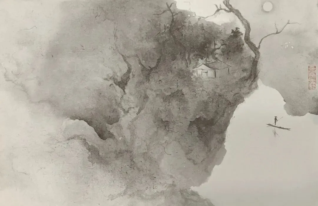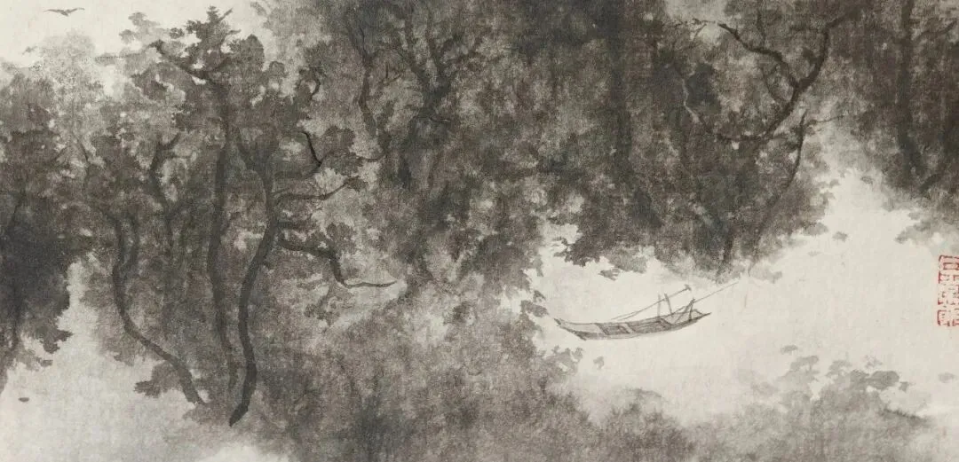 本次展览共展出雨石国画小品三十余幅,药朋山水画小品四十余幅。雨石传统根基深固,作品古意悠然,闲适散淡,山石苍润,树木古朴,寥寥数笔而神采自生,得江南山水灵秀之气,意境淡雅清远。药朋即赵跃鹏,其画作气息纯正,清气逼人,画风飘逸空灵,笔墨中更添人间温情,纯净中透出煦暖,纵横洒脱,意趣盎然。两位画家,一位古淡天真,一位空灵清透,风格各异而心契神交,此次联展堪称一场精彩的笔墨对话。