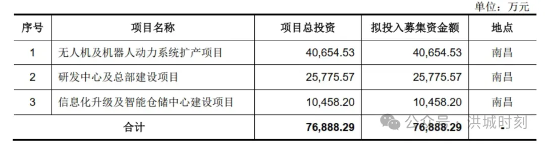 根据早先消息,项目还将募集资金7.69亿元,投向三大项目:其中无人机及机器人动力系统扩产项目投资总额为4.07亿元,建设期为3年。项目拟通过新建生产车间及附属设施,引入先进生产设备,新增项目定员602人,从而扩大现有无人机及机器人动力系统的生产规模(新增各类电机产品100万台/年、各类电子调速器产品80万台/年、各类螺旋桨产品80万支/年)。通过实施该项目,公司将进一步提高生产制造智能化水平,形成规模化生产效应,进而巩固公司的市场竞争优势。