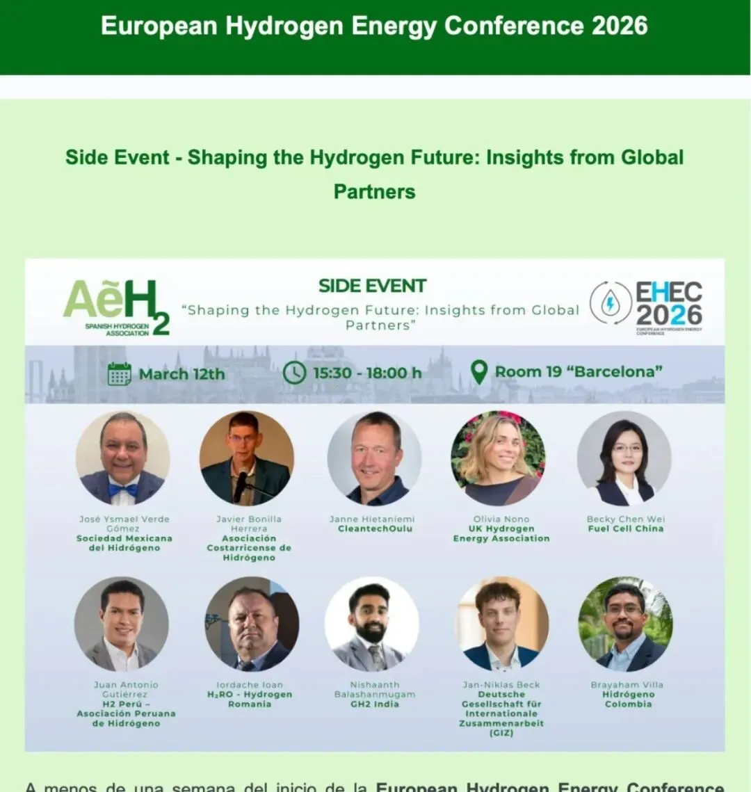 2026年3月,FuelCellChina创始人陈伟(Becky)受邀参加西班牙国际氢能展EHEC2026