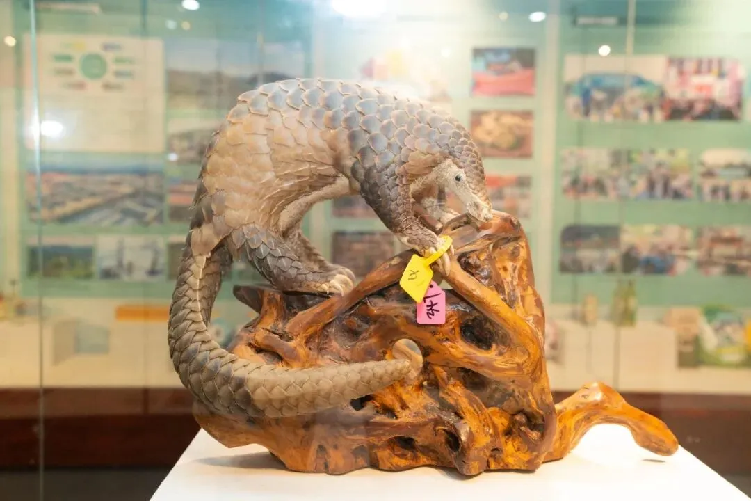 步入展厅,浓郁的绿色气息扑面而来,主题展区布局精巧、亮点纷呈。除了详实的图文展板、珍贵的历史史料、生动的影像资料外,各类特色展陈内容更是让观展体验充满趣味与收获。展厅内,野生动物标本成为一大亮点,穿山甲、白鹇等标本制作精细、形态逼真,精准还原物种原生形态,让观众身临其境感受南粤生物多样性的独特魅力。