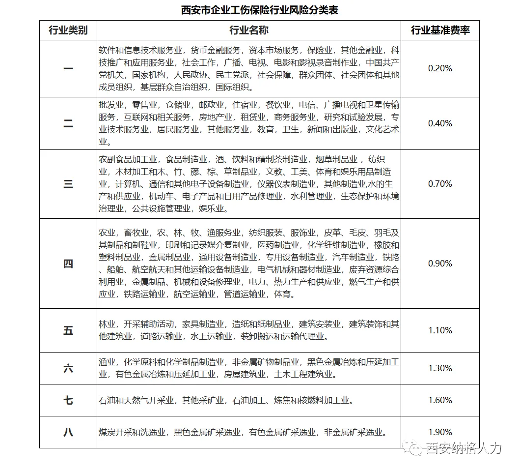 西安市企业工伤保险行业费率分类表