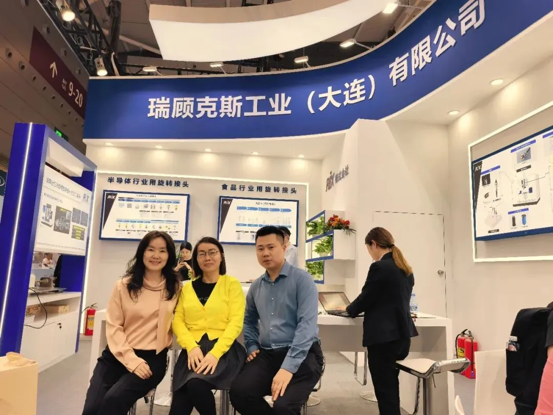 岱洲机械主要代理日本瑞顾克期系列产品,许秘书和陈总及官经理在展位上合影留念。