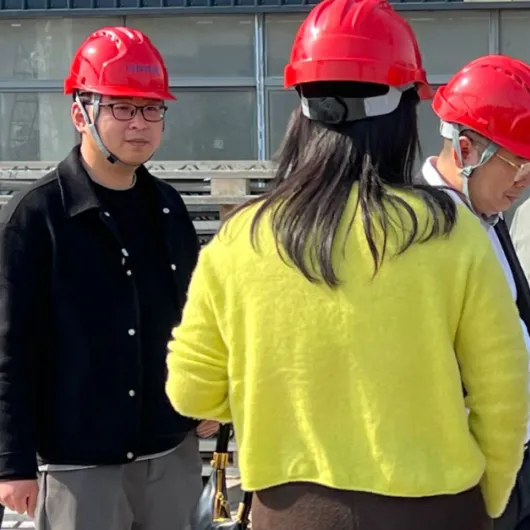 当日上午 9 点半,赣商汇工程行业联盟全体成员准时在赣商汇集合,统一乘车前往江苏泰州。抵达后,成员们首先前往项目工地进行实地参观,现场有专业人员全程陪同,针对工地施工建设、工程运营规范等内容细致讲解,让成员们直观了解参访企业的工程实力、施工标准与实操流程。
