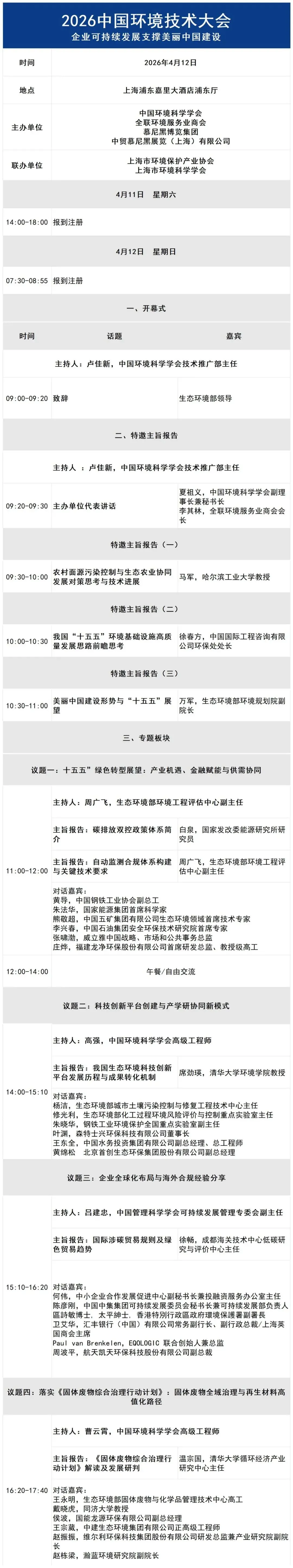 无论你是寻求技术升级、拓展市场版图的企业代表,还是关注政策导向、推动产业升级的行业从业者,这里都是链接资源、洞察趋势、共谋发展的核心平台。2026 年 4 月,上海见!让我们携手推动环保产业高质量发展,共绘美丽中国新蓝图。