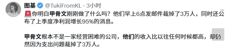 甲骨文的裁员风暴,是企业在时代变革中的一次重大抉择,也是科技行业在 AI 浪潮下的一个缩影。它让我们看到了科技发展带来的机遇与挑战,也让我们思考企业在追求利益最大化的同时,应如何兼顾员工权益和社会责任。未来,甲骨文能否凭借此次 “断臂求生” 之举,在 AI 领域闯出一片天地,还是会因裁员带来的种种后遗症而陷入更深的困境,值得我们持续关注。而科技行业又将因甲骨文的这一动作发生怎样的变化,是加速洗牌还是迎来新的格局,也充满了变数。
