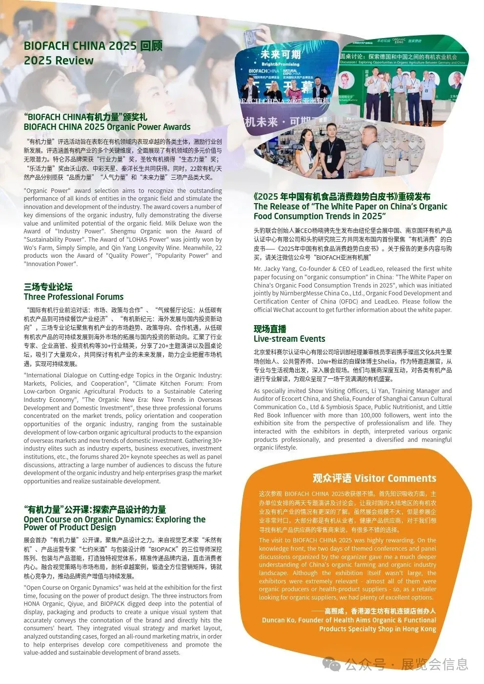 展会还将举办多场精品行业论坛,覆盖有机产业的各个方面。从行业趋势到赋能品牌,从专家详解到现场答疑,为参与者提供多维度了解有机行业的机会。