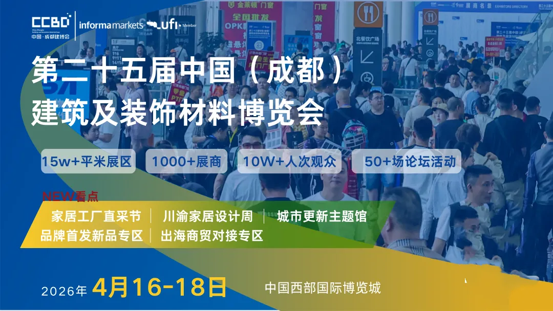 该展会创办于2004年,经过20余届的稳步发展,展会规模已跃居全国同类展会前列,是成都市博览局、成都市经济与信息化局重点打造的成都品牌展会。2019年11月成都建博会正式通过了国际UFI认证,加入国际性品牌展会行列。展品范围包括:门窗、定制家居、全屋整装、顶/墙/地材/软装及灯饰、陶瓷/卫浴/石材、智能家居、暖通舒适家居/厨电、建筑新材料及装配式建筑等行业产品展示为主。