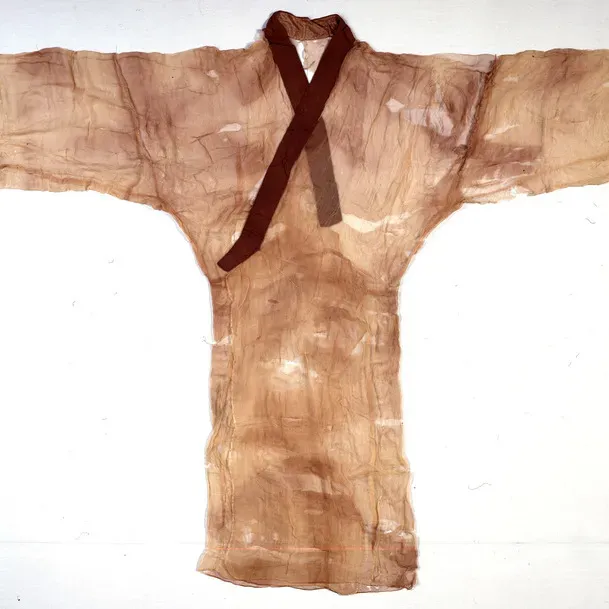 素纱单衣为西汉时期文物,1972年出土于湖南省长沙市马王堆一号汉墓,墓主人为西汉长沙国丞相、轪侯利苍之妻辛追。