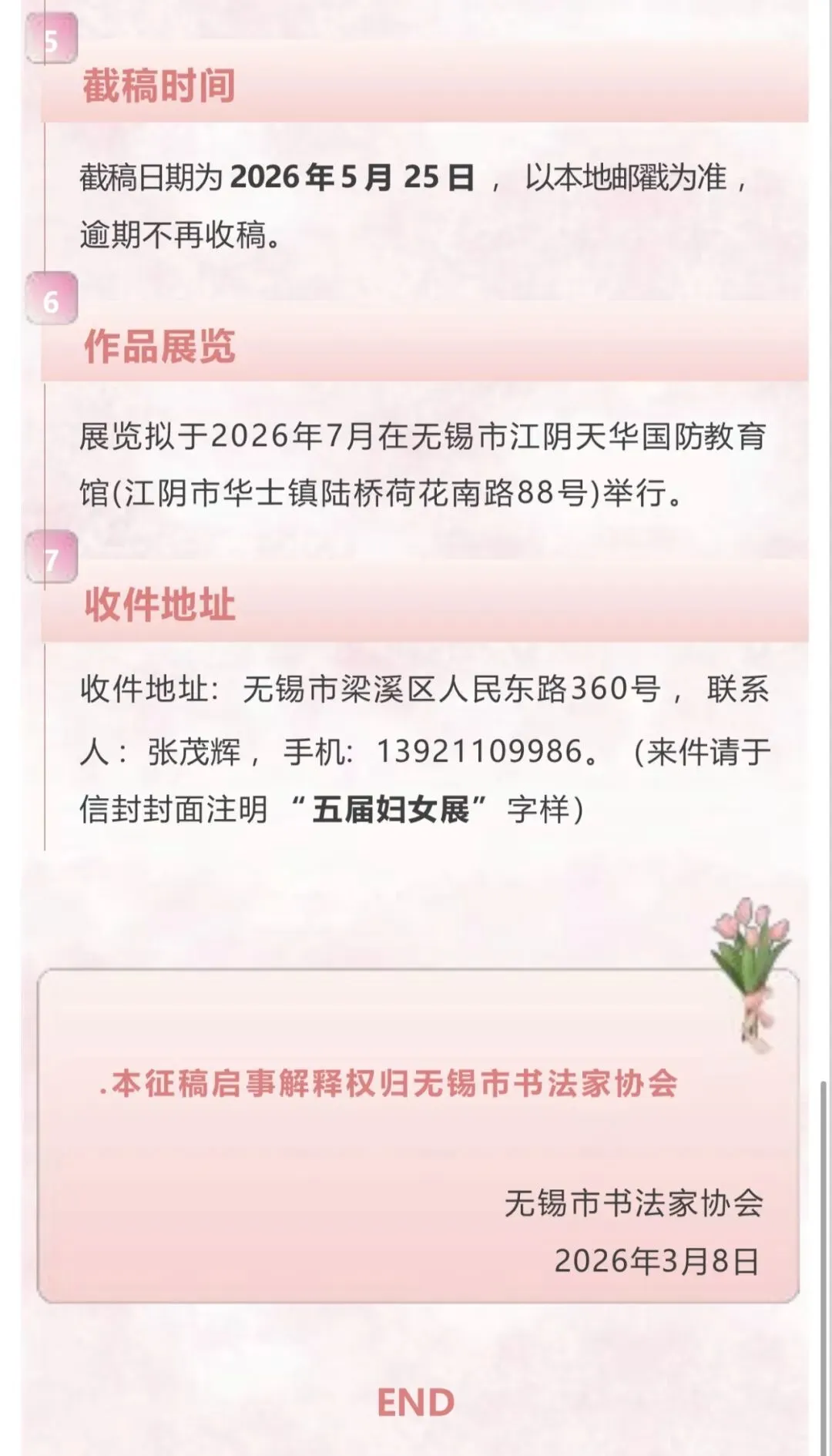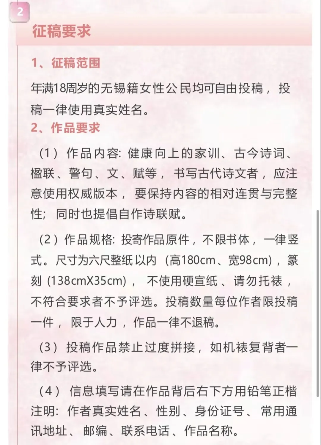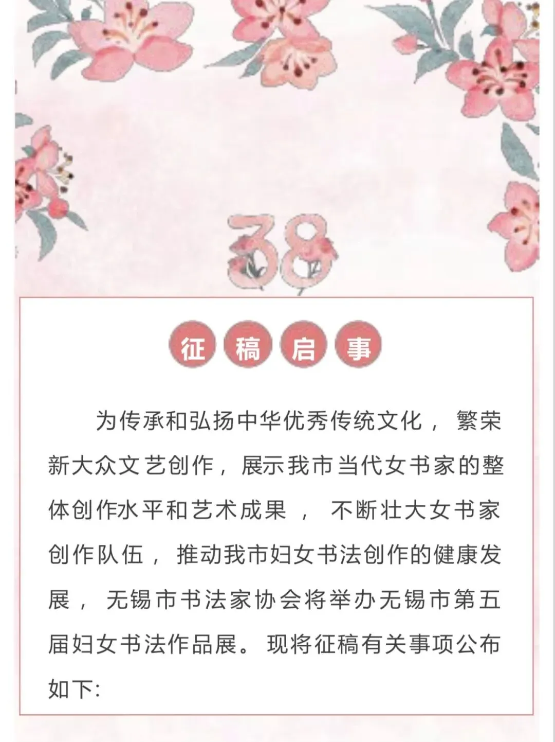 展览征稿‖无锡市第五届妇女书法作品展征稿启事