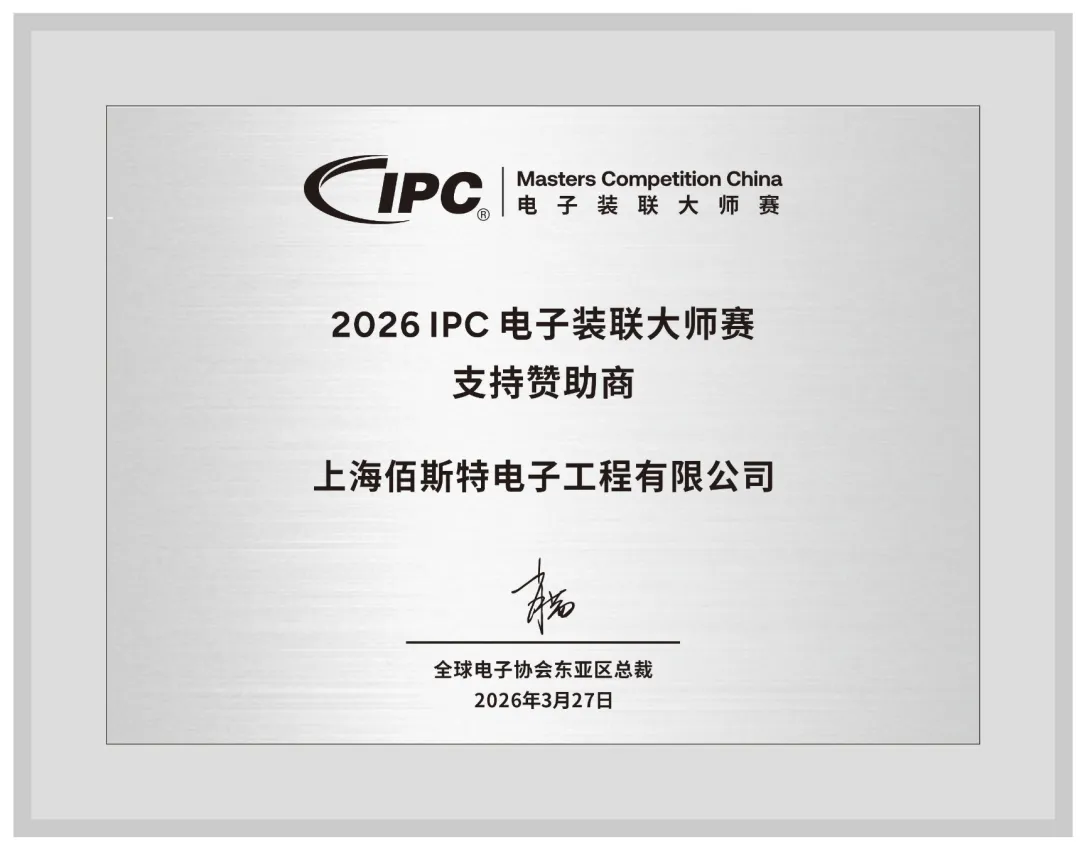 作为行业领军企业,上海佰斯特电子工程有限公司长期担任IPC电子装联大师赛支持赞助商,深度联动行业权威赛事平台,以技术赋能赛事实践、以赛事反哺技术创新,为电子装联领域的技术交流与人才培养注入核心力量。