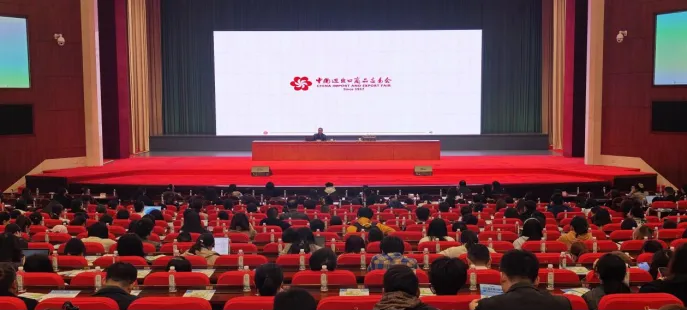 浙江远大国际会展有限公司综合部部长林勇平就本届广交会基本情况、违规转让展位认定与处理、参展注意事项、证件办理等实操要点作了详细说明,并回答了现场企业提问;中国出口信用保险公司结合真实案例,作“政策性保险助力金华企业防风险拓市场”专题讲解,重点提示海外买方欺诈风险;宁波银行金华分行则介绍了广交会专项金融服务方案,为企业提供跨境结算、融资支持等一站式金融保障。