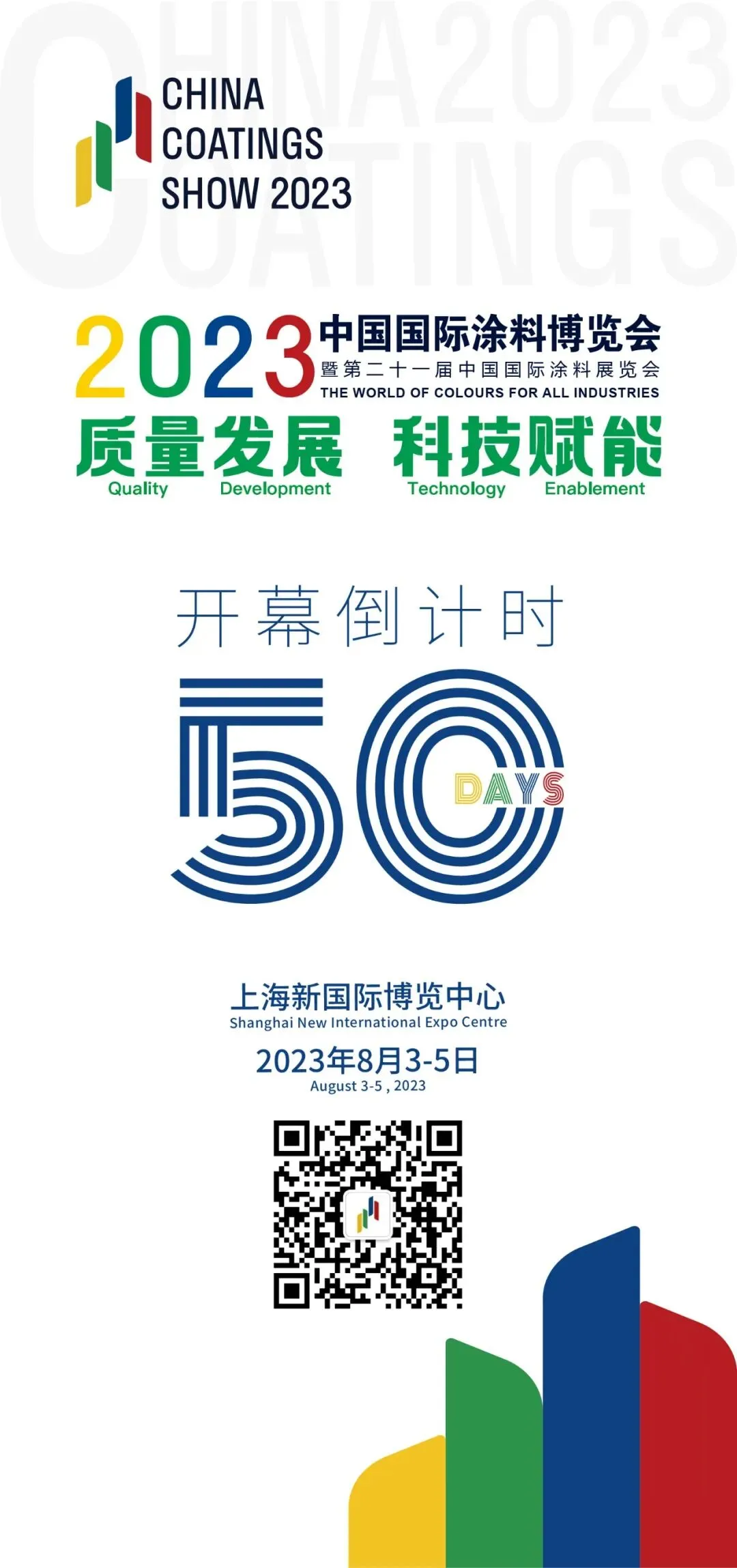 2023中国国际涂料博览会暨第二十一届中国国际涂料展览会(China Coatings Show 2023)是全球最大的、最负盛名的全产业链涂料展,8月3-5日,全球排名前50强的国内外知名涂料制造商将齐聚黄浦江畔,涂料上下游产业链汇聚一堂,亮相上海新国际博览中心,展示涂料行业最新产品、新技术、新趋势。为期三天的涂料展,亮点纷呈:部委领导、行业专家现场解读行业政策、法规动向、标准,为高质量发展注入新动能、赋予新活力;一站式了解涂料行业最新进展,洞悉行业前沿新技术、新产品,提高创新能力;建立涂料行业供需产业链新联系,开拓无限商机;免费参加展会同期30+专业论坛和对接会,了解行业最新动态,助力降碳减排,绿色发展;产学研用联动,精准推进新技术产业化对接;智能云观展,线上线下同步宣传;央视、东方卫视、第一财经、腾讯、新浪、中国化工报等强大媒体阵容助阵本届展会,传统媒体、新媒体融合,线上线下全方位报道展会、宣传展商,传播行业新动态,引领行业发展。中国国际涂料博览会覆盖了涂料、油墨及相关产业,并已成为涂料行业公认的集品牌宣传、产品展示、信息交流、业务拓展等多功能为一体的重要平台,届时,展会将展现涂料上下游产业在深度调整的大变局中集聚的变革和突破的力量。