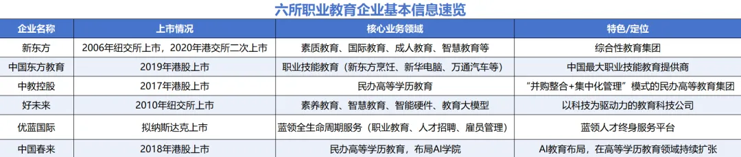 过去二十年,中国职业教育行业经历了从粗放式扩张到精细化运营的深刻转型。2006年,新东方登陆纽交所,向世界展示了中国教育“人”的价值——激情、个性、不可替代。十余年后,中国东方教育与中教控股先后在香港上市,它们主角不再是某位明星教师,而是一套套标准化的师资培养体系、精细化的成本管控模型和系统化的并购整合方案。与此同时,好未来以科技驱动重新定义教育,优蓝国际深耕蓝领全生命周期服务,中国春来在高等学历教育领域持续扩张。