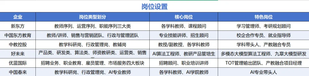 第二,人才结构持续优化升级。好未来大量引入AI算法工程师,推动教育科技深度融合;优蓝国际围绕蓝领全生命周期配置多元人才,形成“职业教育-人才招聘-雇员管理”的服务闭环;新东方考研教师要求硕士学历,提升专业服务门槛;中国春来布局AI学院,引入AI专业人才。