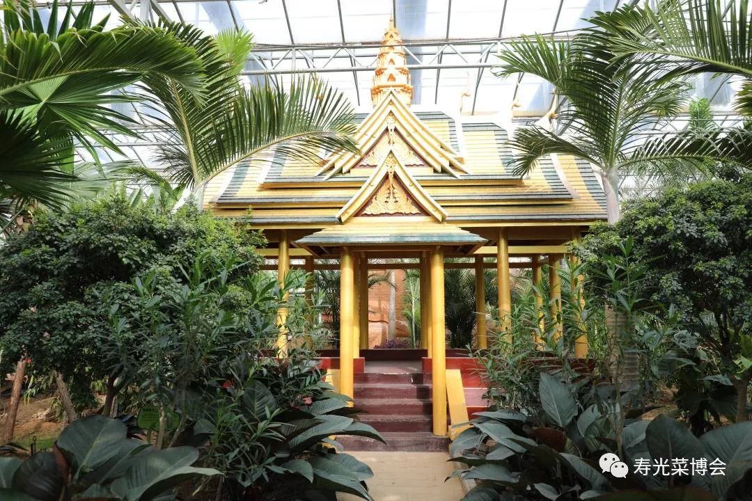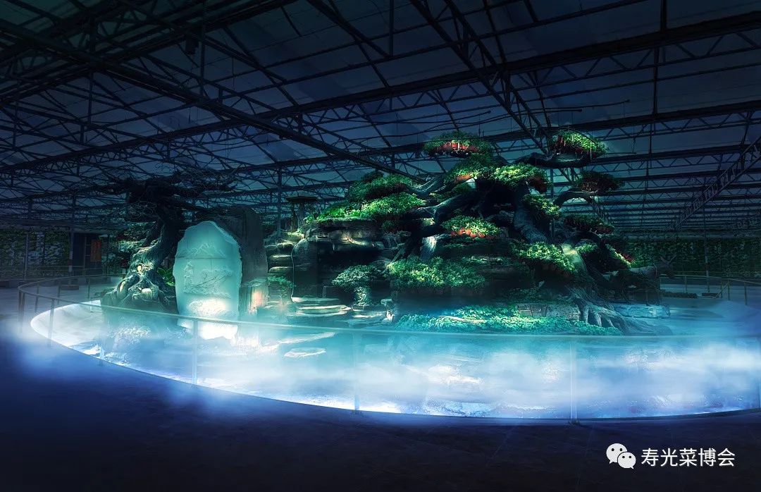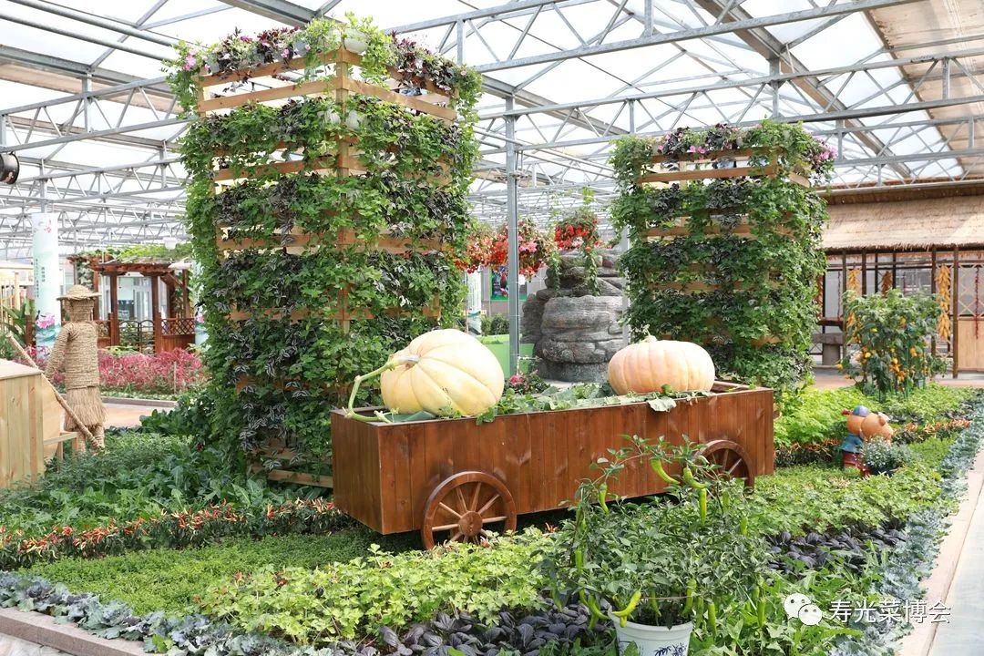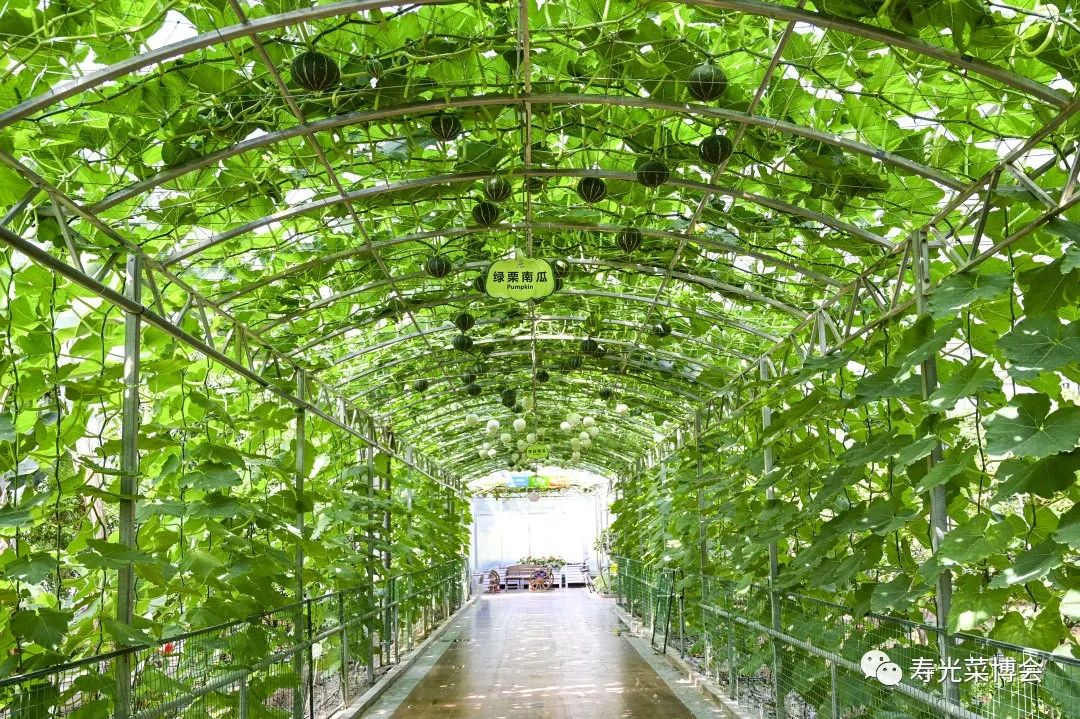 为寿光蔬菜实用技术馆,该馆面积10000平方米,选取多个优良蔬菜品种,运用高效立体栽培模式,展现寿光当地传统廊架园艺特色,满园叠翠,硕果累累,廊架下设步道,增强沉浸式体验,中间核心区以假山为载体,打造《齐民要术》特色专区。