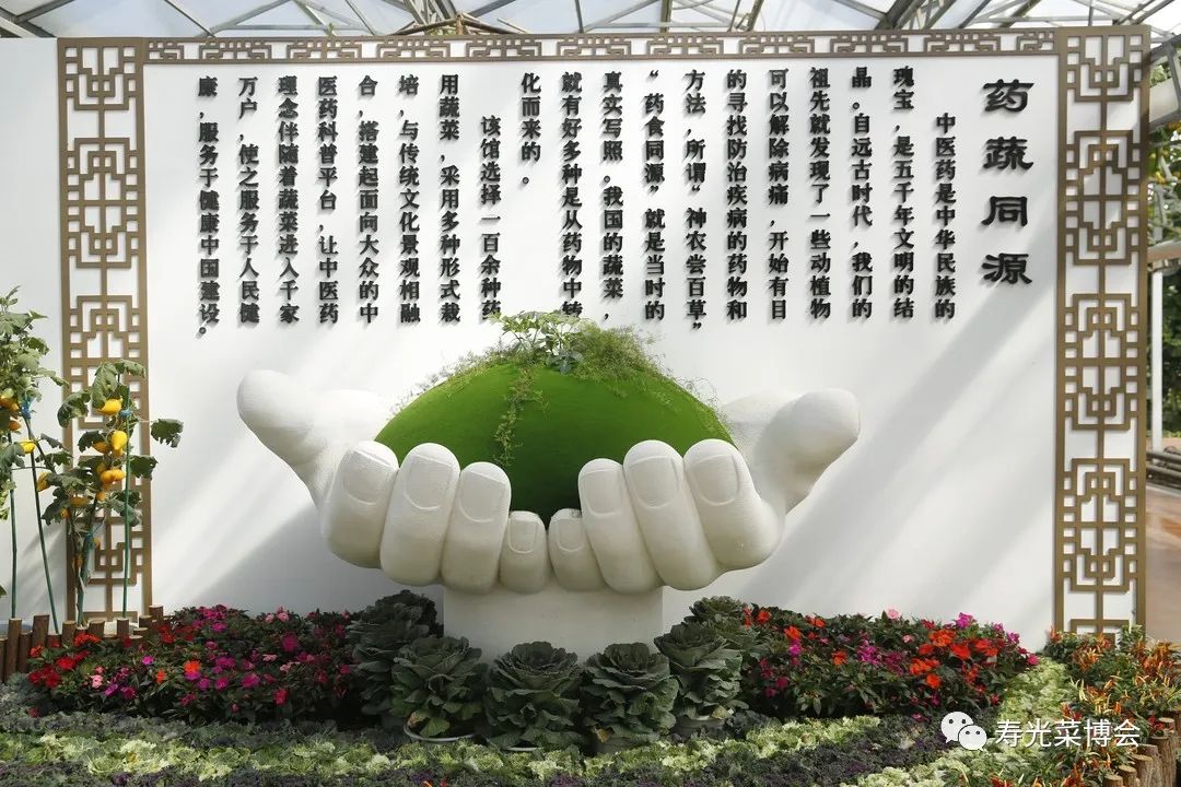 为药蔬同源馆,该馆面积4000平方米,馆内展示300多种中药蔬菜,采用多种栽培模式,与传统文化景观相融合。设置药蔬同源蔬菜无土栽培区、药方田、中医诊疗点等,融合中医药文化,搭建面向大众的科普平台,让游客深入了解药蔬同源的种类、特性。