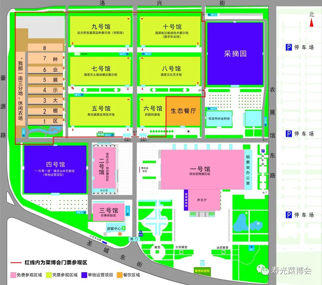 主展区总面积45万平方米,其中室内展览面积16.5万平方米,包括10个展馆、采摘园、日光温室高产栽培区、蔬菜博物馆、休闲农场及室外展区。