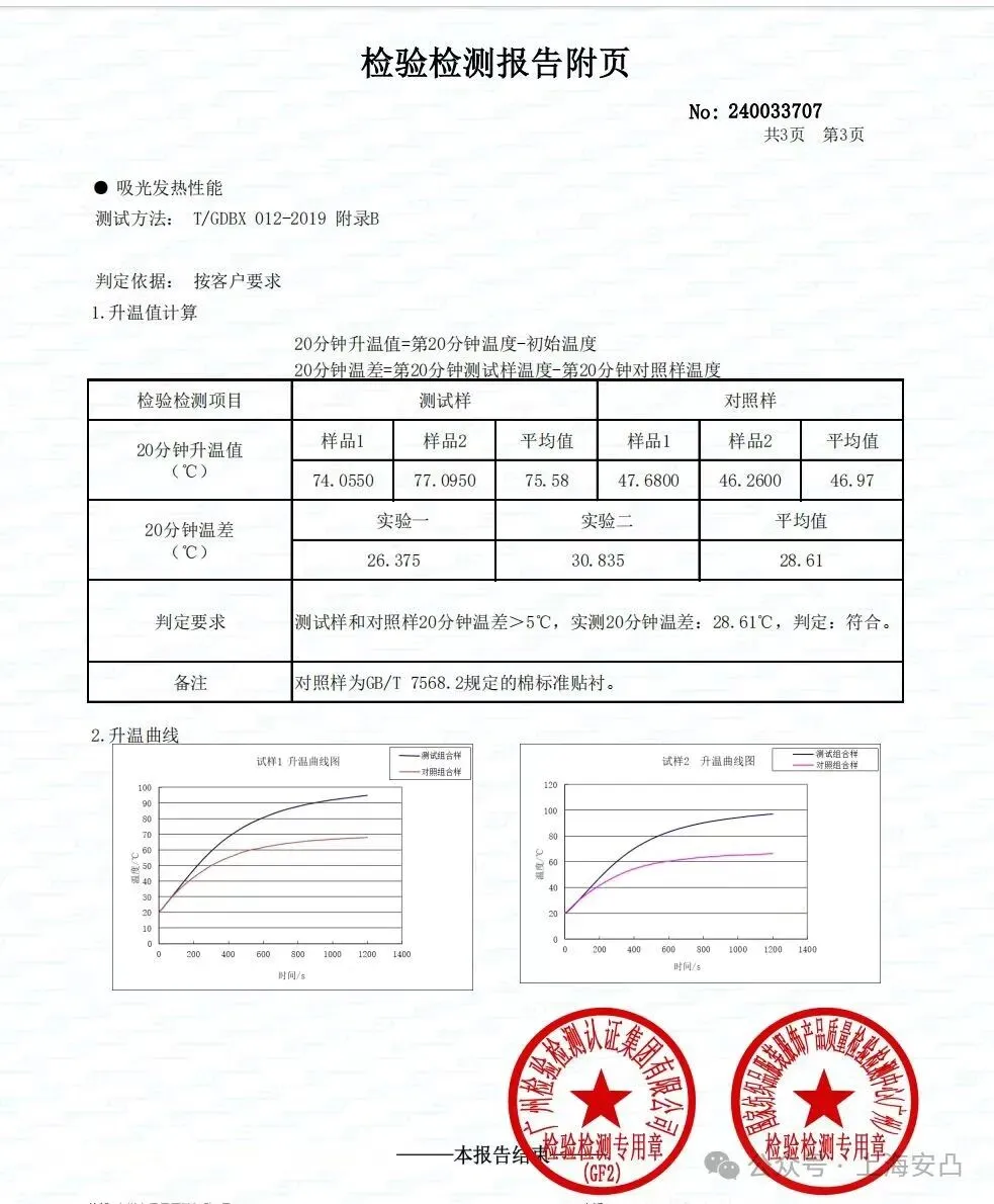 (BOKEN测试法:十分钟升温测试吸光发热能力,十分钟降温测试保温性能)