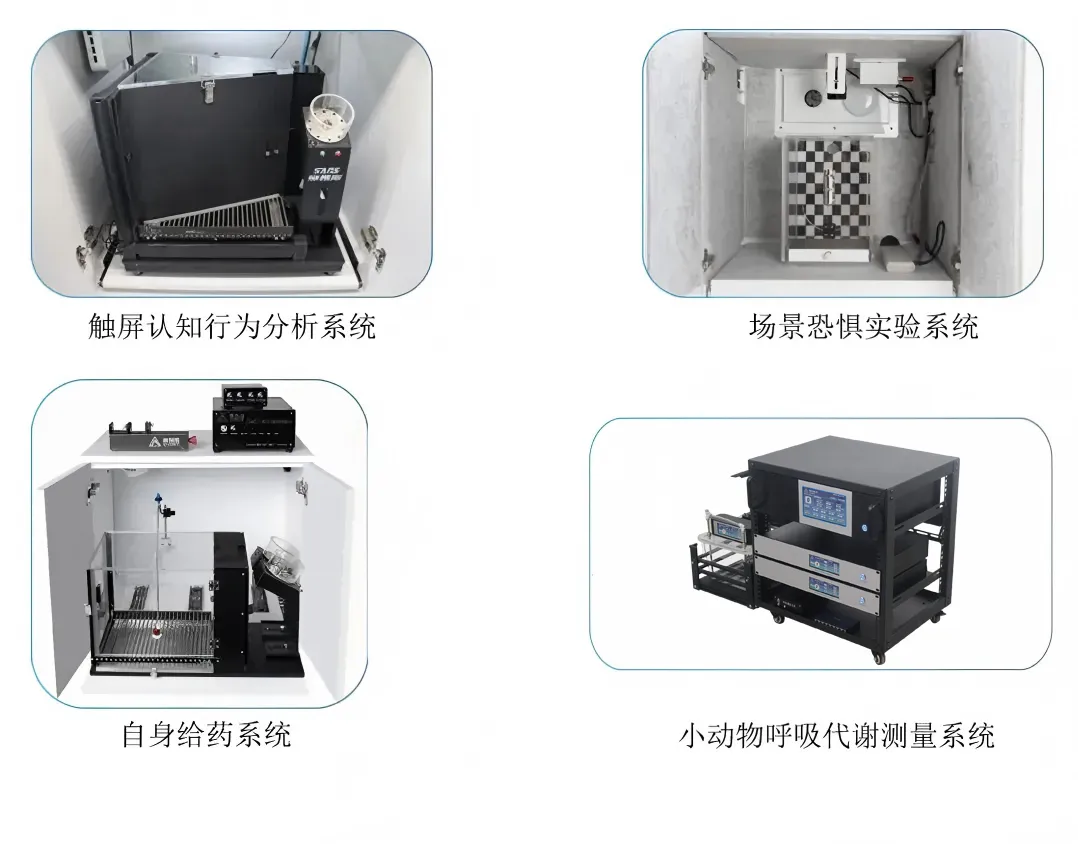 新一代精细化行为学检测系统、自身给药系统、猴子触屏认知行为测试系统、触屏认知行为分析系统、震惊反射系统、场景恐惧实验系统、全自动学习无助系统、自动门CPP条件位置偏爱系统等