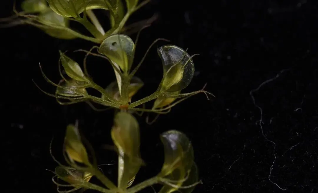 貉藻则是水生食肉植物中的“闪电猎手”,多生长在淡水池塘、沼泽等清澈水域。它的叶片特化为小巧的捕虫夹,成对生于茎节,边缘布满敏感触毛,宛如水中张开的微型铗钳。当水蚤等猎物触碰触毛,捕虫夹会在10-20毫秒内迅速闭合,速度堪比人类眨眼的百分之一,牢牢锁住猎物。闭合后的捕虫夹会分泌消化酶,将猎物分解为氮、磷等营养物质吸收,弥补水生环境中土壤养分的匮乏。