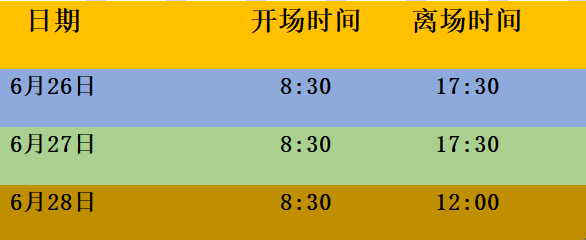 离场:6月28日12:00离场。