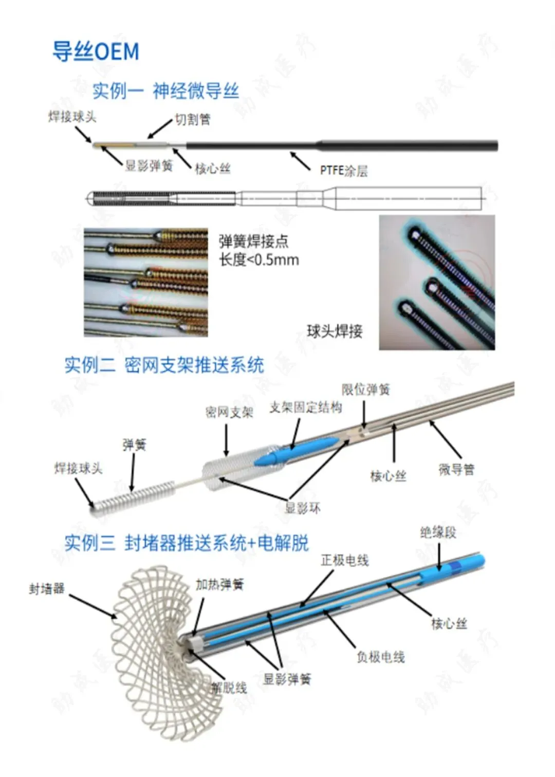 可提供神经微导丝、密网支架推送系统、封堵器推送系统以及磁控导丝等的生产和加工。
