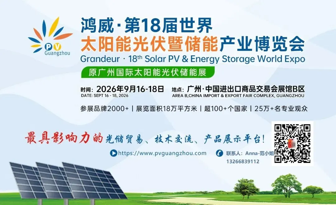 当前,全球能源变革浪潮奔涌向前,碳中和目标已从全球共识加速转化为务实行动。在此时代坐标下,第18届世界太阳能光伏暨储能产业博览会(PV Guangzhou 2026),将于9月16-18日在广州·广交会展馆B区隆重举行。本届博览会以“链接全球,光储未来”为核心使命,汇聚全球光储领域智慧力量,贯通全产业链条,倾力打造集技术展示、深度交流、精准合作、趋势洞见于一体的世界级光储盛会,为全球能源转型注入强劲动力。