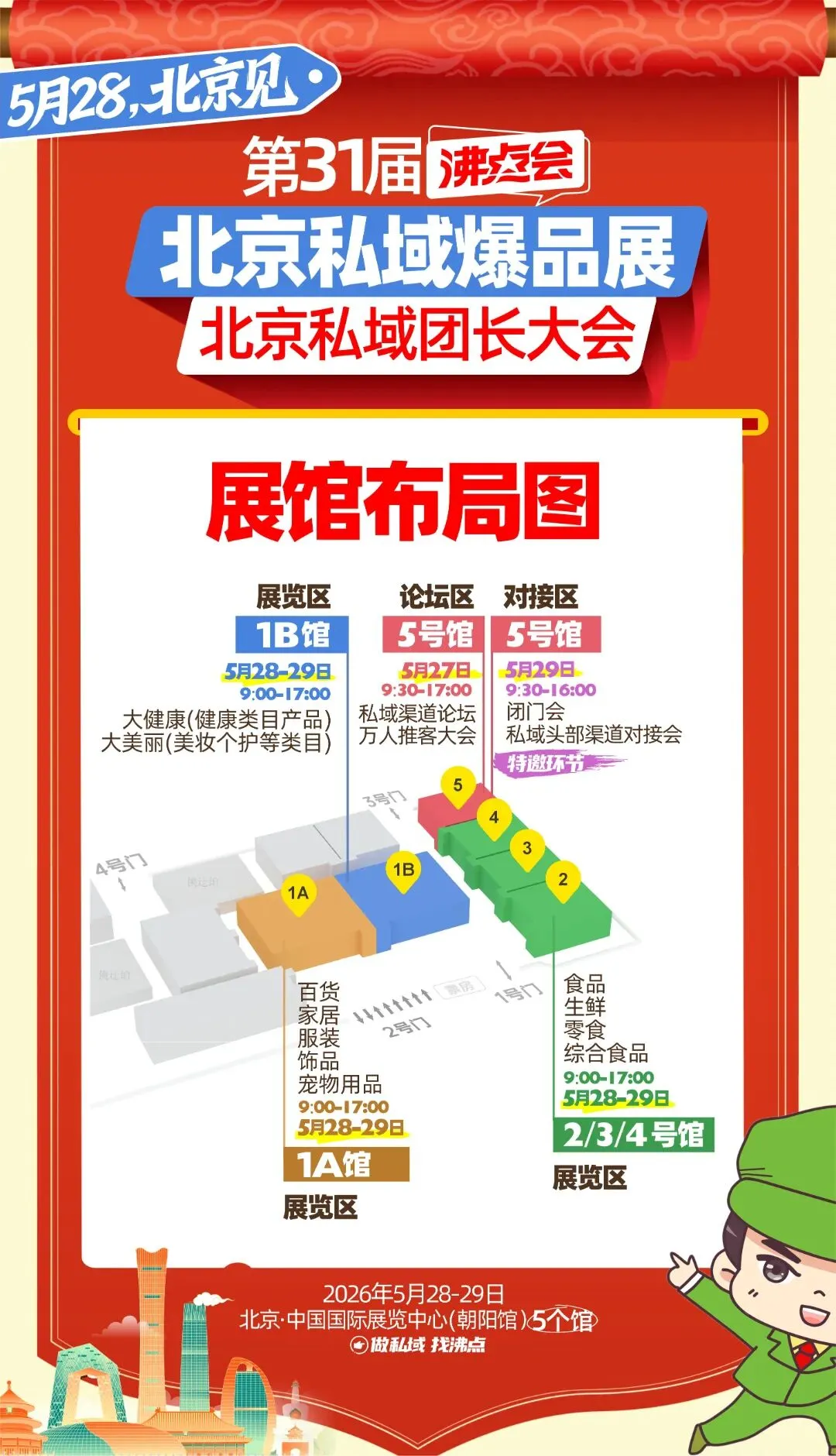 无论您是寻找爆品的渠道方,还是希望拓展销路的供货商,清晰了解展馆布局与品类安排,都将让您的参展之旅事半功倍。5月北京,沸点会期待与您共鉴私域好物!