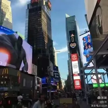 纽约大街高楼大厦鳞次栉比,霓虹灯闪烁,川流不息车辆。