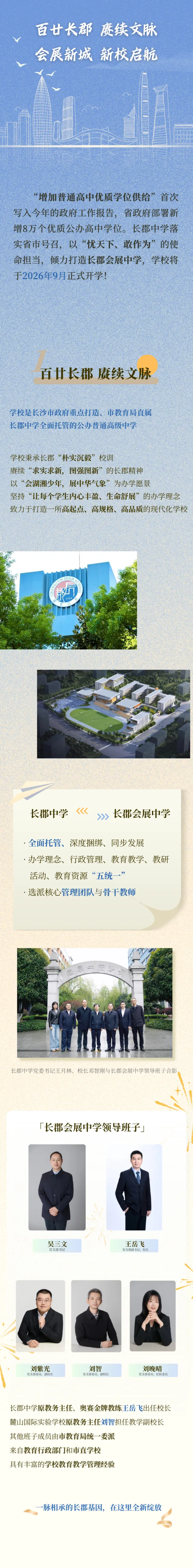 重磅官宣!长郡会展中学将于2026年9月正式开学!长沙县优质高中学位再添3000