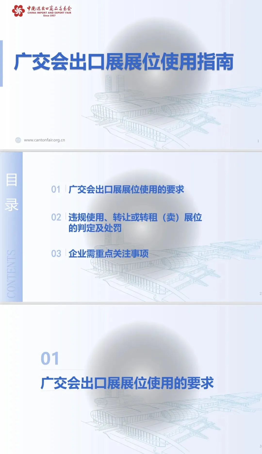 广交会官网发布了广交会出口展展位使用指南,请各参展企业留意展位使用相关要求并严格遵照执行。详请请点击阅读原文查看。