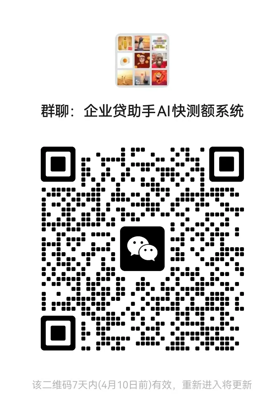 我建了个企业贷AI智能快测额群,欢迎加入群聊,说一下你的使用感受。欢迎提出建议意见。