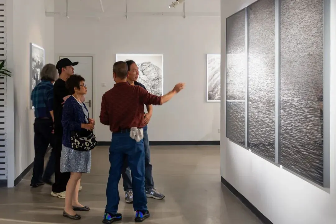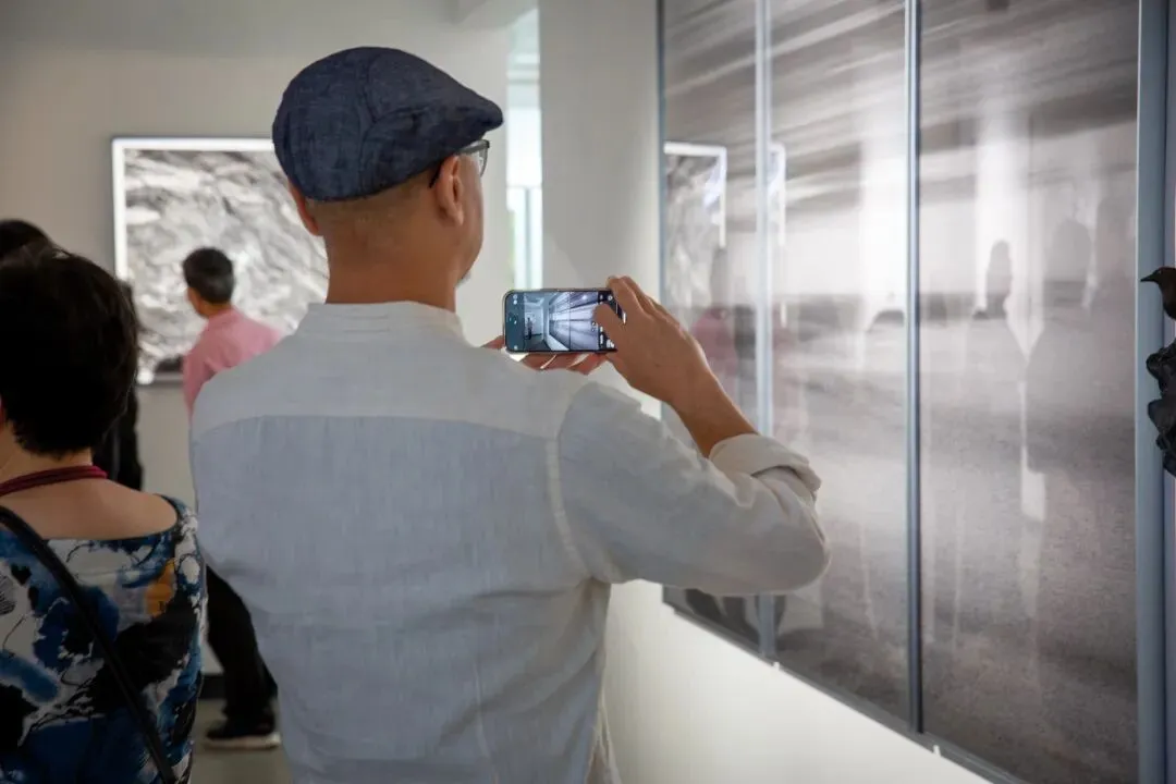 展览现场热闹非凡,观众们在作品前驻足观赏感受艺术之美之余,也相互兴奋地讨论着观赏感想及对作品的喜爱之情。
